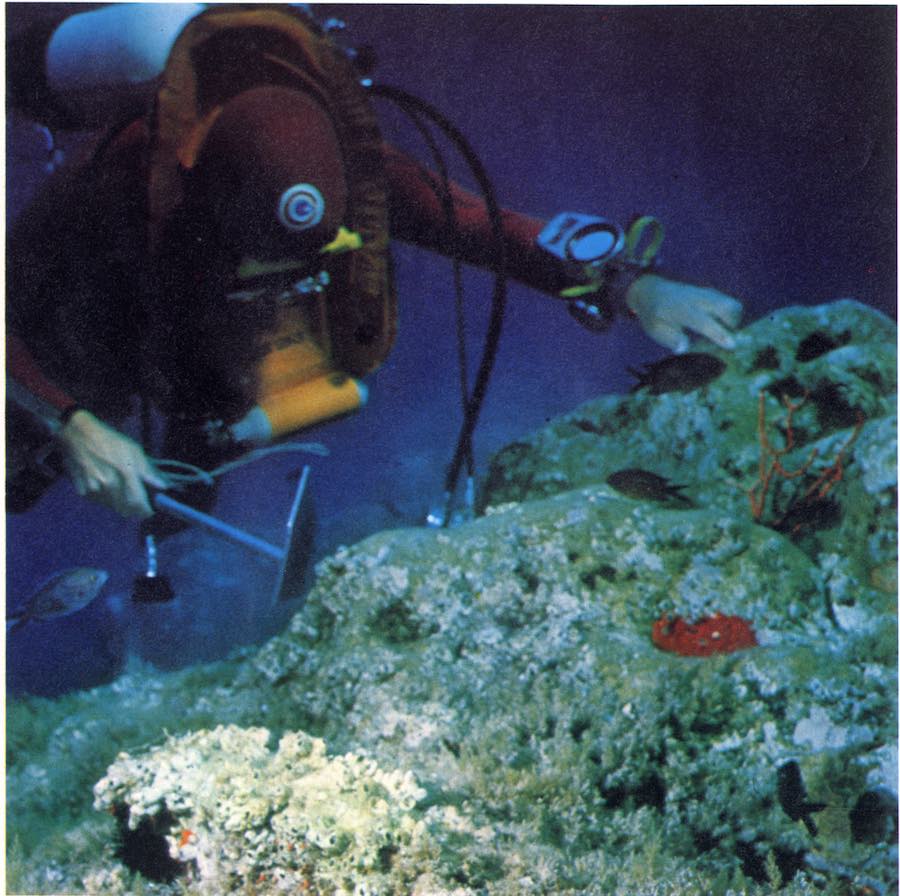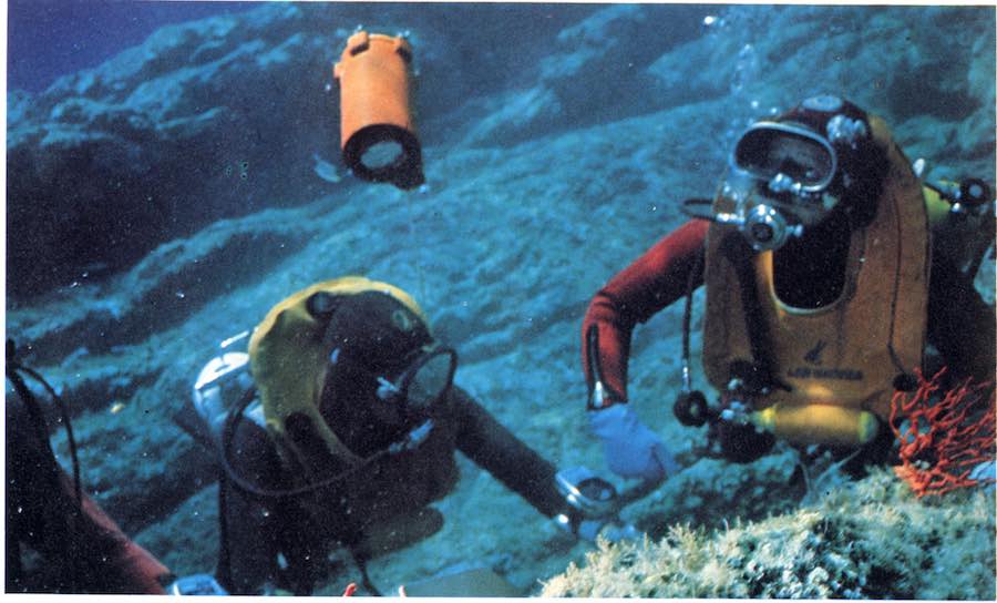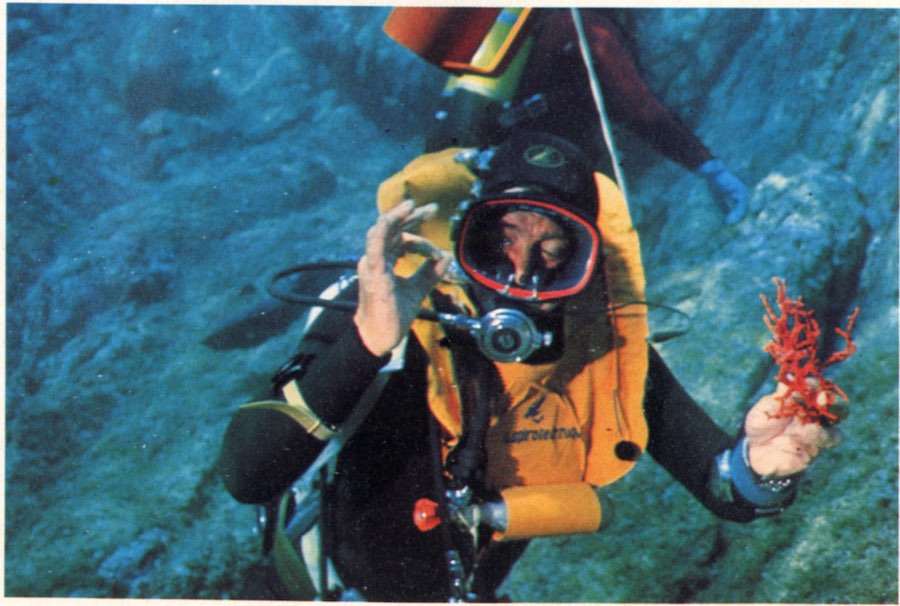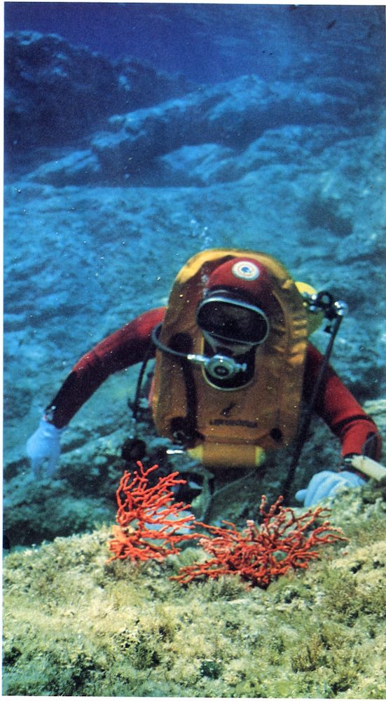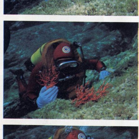“Il servizio è stato ripreso a 80 metri con una Nikonos ob.28 mm e flash elettronico. Mi interessava documentare il lavoro dei corallari – ma il lavoro dura quindici minuti sul fondo a 100-120 metri con quattro ore di decompressione. La ricerca avviene schematicamente cosi: in barca i corallari hanno un eco-scandaglio; individuata una secca con una caduta a profondità superiore ai cinquanta metri scendono e cercano il corallo; in genere un’immersione è positiva ogni tre o quattro. La prima generazione dei corallari è tutta morta e avevano in media quarant’anni, ed è morta dei postumi di decompressione, embolie, etc. La seconda generazione usa non più aria compressa ma miscele a elio e ossigeno che permettono di lavorare sul fondo con maggiore lucidità e però mantengono gravi problemi di decompressione in stretta relazione a quelli della embolia. In genere un corallaro può portare a terra anche sette, otto chili di corallo al giorno, il che vuole dire circa 3 milioni di valore (1978) con la competa però distruzione della fauna sottomarina: un ramo di corallo di medie dimensioni si costruisce in circa cento anni. Le società dei corallari in cooperativa che usano miscele (ogni immersione costa circa 80 000 lire di miscele elio ossigeno) sono soltanto due per i grossi investimenti necessari e anche per la gelosia e i segreti che i corallari mantengono sui luoghi di ricerca; l’Italia comunque è rimasta nel Mediterraneo, il solo paese che permette la pesca libera del corallo. Il corallo oggi costa 600-800 000 al chilo quando è grezzo, lavorato in gioielleria costa come l’oro. Non ho mai conosciuto un corallaro che si fosse arricchito: sono morti tutti prima!”