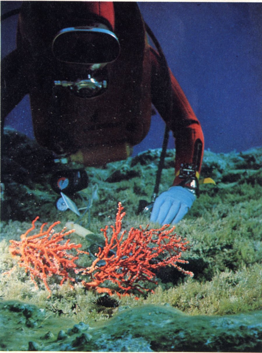La crescita del corallo, un tempo diffuso fino a qualche decina di metri di profondità lungo tutte le nostre coste, soprattutto nelle zone più calde, è limitata alle profondità maggiori, alle secche, appunto e la sua raccolta è divenuta una vera e propria pianificata distruzione di ambiente. Il corallo insomma è un elemento quasi simbolico di un processo di eliminazione della fauna che ha fatto e fa tante vittime nel nostro mare. Il fatto che la sola Italia sia la nazione dove questa “pesca”, o, meglio distruzione, sia ancora permessa può indicare la sensibilità per i problemi di ambiente che caratterizza la nostra cultura. La costituzione di qualche parco sottomarino non sarà certamente determinante per salvare queste madrepore troppo appetibili, finché ne durerà la moda, per poter sopravvivere.